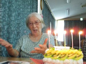 日和では、7月31日に、7月生まれの方のお誕生会を行っています。夏のフルーツでデコレーションしたケーキや花束、プレゼントなどでお祝いをさせていただいております♪ お誕生日を迎えられた皆様、!お誕生日おめでとうございます!