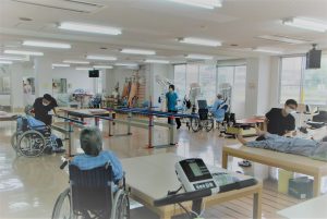 病棟だけではなく、リハ室に移動して積極的に行っています。