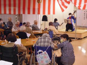 三味線の演奏に合わせて、入居者さまと歌ったり…(^^♪
