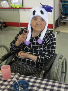 用意した帽子や被り物を見られ、「これはかぶらんといけんとやろう?」とハロウィンの仮装に積極的に参加して下さいました!