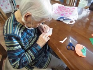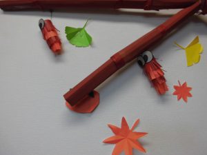紅葉の形に切り取った和紙をつけ、全体的に乾いた