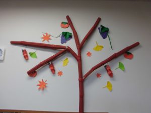 まず、画用紙に茶色の絵具で塗り筒状にして