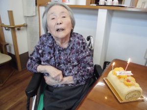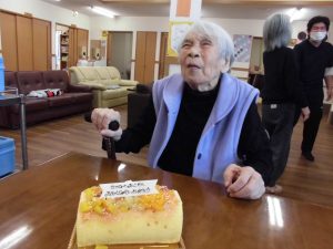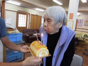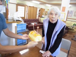 入居者様とスタッフで楽しく誕生日のお祝をする