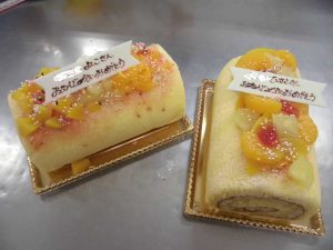 ケーキは小郡にあるケーキ屋さんベベでロールケーキ