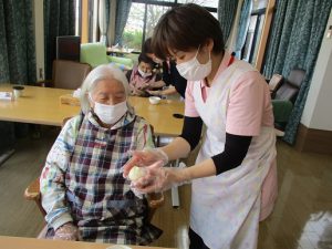 豚まん作り ひより 2020/11/12 15:43 今月も先月に引き続き、栄養士による“豚まんづくり”を行っております。 今月も栄養士の指導にて、皆さん、一生懸命に作ってくださいました。 皮を伸ばして、肉餡を包まれ、このとおり素晴らしい出来栄えに✨ ホットケーキミックス粉を使うと簡単に皮ができるそうですよ。 蒸し上がったホクホクの豚まんを皆さん、美味しそうに召し上がられました。 せいわデイサービスセンター日和 次の記事へ 一覧に戻る 前の記事へ