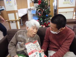 おもやいクリスマス会♪ おもやい 2021/01/11 10:02 2020年12月17日にクリスマス会を行いました。 フルーツたくさんの美味しいクリスマスケーキと 紅茶を頂きました。 サンタさんがクリスマスプレゼントを持って登場です! 「メリークリスマス!」と一人一人プレゼントを手渡して 行きました♪ 「ありがとう」「嬉しい!」とみなさんとても喜んで 下さって良かったです♪ さっそくプレゼントを開けて見せ合ってありました(*^_^*) グループホーム おもやい 次の記事へ 一覧に戻る 前の記事へ