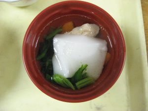 お雑煮が食べたいとのリクエストが多く、安全に配慮した餅によく似たものをお出ししました。