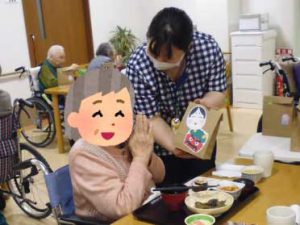 入居者さまが元気よく豆を投げ、厄払いをするのですが…