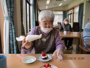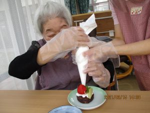 そして、日和では、チョコレート菓子を使った“おやつ作り”を行い、“チョコレートパーティ”を行いました。