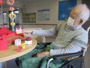 デイサービスでは、リハビリ職員からご利用者へ、サプライズでチョコのプレゼントがありました!