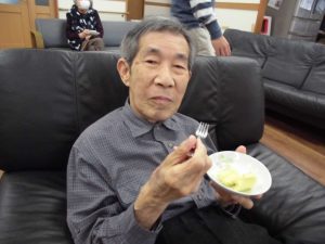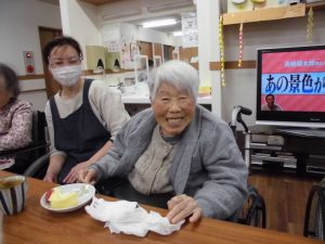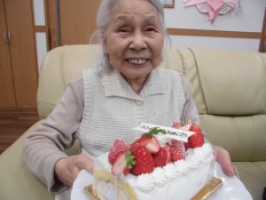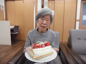 誕生会(2月) おもやい 2021/03/10 9:52 2021年2月に誕生会を行いました。 今月のお誕生日の方は4名です。 ケーキは小郡にあるべべのケーキ屋さんで、今が旬の イチゴケーキを購入しました♪ 「わぁ!美味しそうですね♪」 「ありがとう~!」 「わっ!美味しかろ♪食べて良かね?」 「お誕生日おめでとうございます」と声をかけると 「ありがとうございます」と、とても喜ばれてありました。 暖かい紅茶と一緒にケーキを準備しました。イチゴが甘くて 美味しいと好評でした♪ グループホーム おもやい 次の記事へ 一覧に戻る 前の記事へ