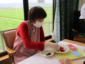 日和では、栄養士企画の“おやつ作り”が行われ、ご利用者が参加されました。