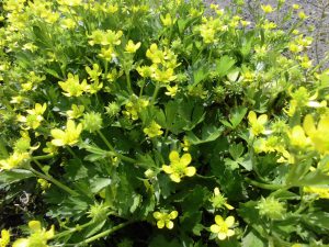 花を見つけ「これは、何の花やろか?かわいいね」と