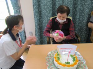 誕生会 ひより 2021/04/26 9:26 つづじが満開となり、色鮮やかで綺麗な季節となってまいりました♪ ご利用者も日和の窓から、つづじを眺めて楽しまれています。 この素敵な季節、日和では、2名のご利用者がお誕生日を迎えられ、お祝いをさせていただきました。 少し汗ばむこの頃ですので、冷たいヨーグルトムースケーキをお二人のために手作りさせて頂きました。 お誕生日おめでとうございます! お二人共、お祝いに笑顔になってくださり、 ケーキも「美味しかった」と喜んでくださりました♪ せいわデイサービスセンター日和 次の記事へ 一覧に戻る 前の記事へ