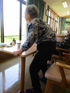 車椅子の方は、30秒の立位を保っていただくと、一日の目標達成とさせていただいております。