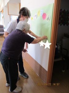 皆様のモチベーションを高めるために、ご利用者と一緒に、取り組まれた日にはシールを貼る表を作り、皆さん頑張られています(*’▽’)