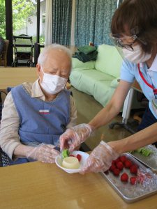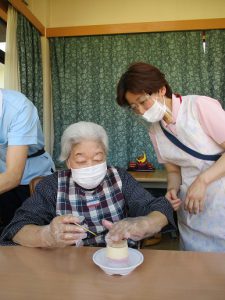 今月も栄養士企画のおやつ作りが行われ、ご利用者が参加されました。