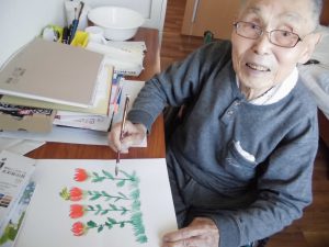 おもやいの画家さん おもやい 2021/06/03 9:01 2021年5月の昼下がり、入居者様がお部屋で絵を 描いていました。 声をかけ見学させて頂くと、絵具で色を塗って おり、とてもきれいな絵でした。 絵が完成しプレゼントして下さると言うことで、 さっそく、フロアの壁に飾らせて頂きました♪ 2作品頂き「ありがとうございます」と声をかけると 恥ずかしそうに「あんまり人に見せんでよかよ~」 と言われてありました。 写真では分かりづらいですが、明るくとてもきれい な色彩で春を感じることが出来ました♪ グループホームおもやい 次の記事へ 一覧に戻る 前の記事へ