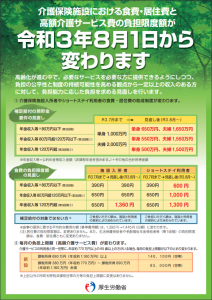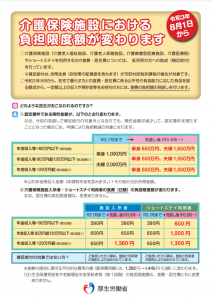 介護施設における食費及び高額サービス費の負担限度額が変わります。