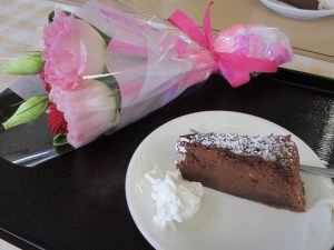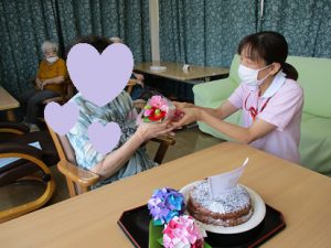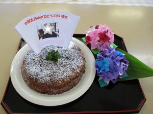 今回は、日和特製の“ガトーショコラ”を焼いて、お祝いをさせていただきました。プレゼントや他のご利用者からの温かいお祝いの言葉をとても喜んでくださりました。お誕生日おめでとうございます!