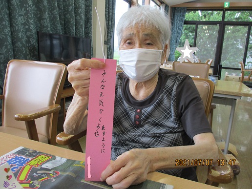 7月7日は、生憎のお天気でしたが、日和では、“七夕飾り作り”や“七夕パーティー”を行い、ご利用者と一緒に“七夕”を楽しみました☆