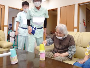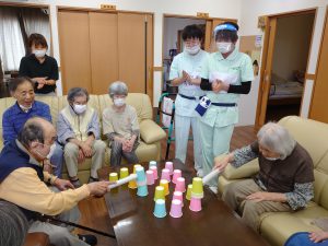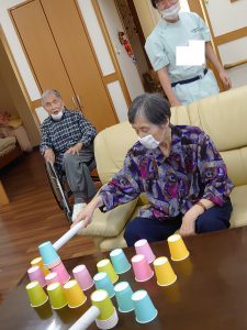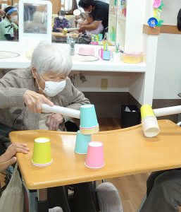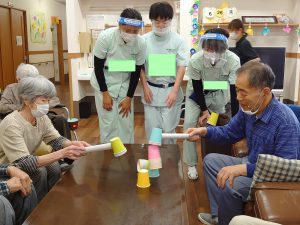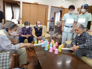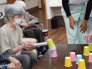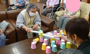 そのあとレクリエーションで「紙コップハンマー」という