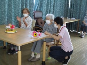 さて、日和では、8月生まれのご利用者のお誕生会を行い、お祝いをさせていただきました。