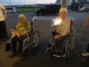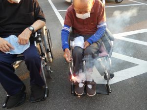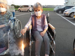 駐車場で花火を行いました。