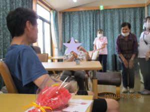 他のご利用者の方々から温かいお祝いの言葉をかけられる度に、笑顔がこぼれていらっしゃいました。