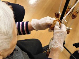 2021年11月 干し柿づくり(デイサービス)続報! まどい 2021/11/17 16:07 令和3年11月9日に、 デイサービスで作った干し柿たちは今… 1週間が経ち、一回り小さくなりましたよ(*´ω`*) 外皮が固くなってきたので、揉んでいきましょうo(^o^)o こうすると、渋みが残らないんだそうです…φ( •ω•́ )フムフム とても丁寧に揉んでくれてます♪ 完成まで、あともう少し! 甘くておいしい干し柿ができるので まだ食べないで待っていてくださいね~(*´艸`*) 次の記事へ 一覧に戻る 前の記事へ