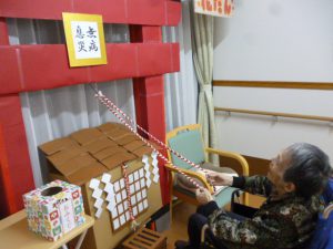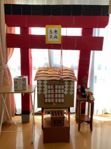 お賽銭箱に(おもちゃの)お賽銭を入れて頂き、