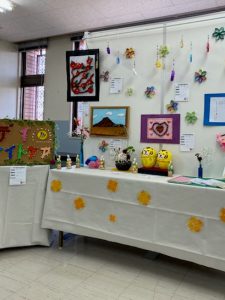OT活動及びデイケア活動で作成した作品を展示し、徹底した感染対策の中で行いました。今回は参加者が良かったと思う作品を投票する形で審査を行い、展示された作品を前に真剣に考えながら投票する姿が印象的でした。