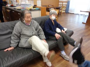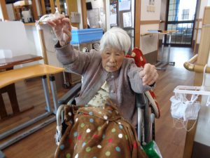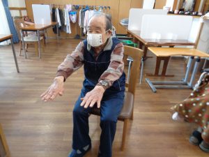 朝の体操 おもやい 2022/03/27 23:16 おもやいでは、NHKテレビ体操の他、嚥下体操、 (コロナウイルス感染予防対策の為、パタカラ嚥下 体操のみ中止しています)を毎朝、行っています。 関節の可動域が入居者様によって違うのでゆっくりと ご自分の出来る範囲で行って頂きます。 日々、軽くストレッチや体を意識して動かす動作を 行うだけでも筋力低下予防につながる為、毎日継続して 行って行きたいと思います。 グループホームおもやい 次の記事へ 一覧に戻る 前の記事へ