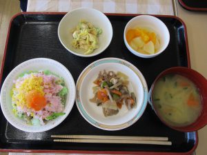 また、昼食には、ひし餅をイメージしたちらし寿司を主とした“ひな祭りメニュー”、