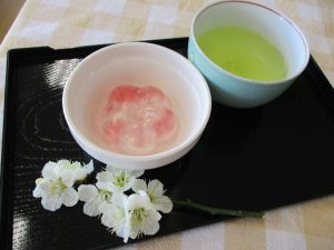 おやつ時には、さくらゼリー🌸をお楽しみいただいております。