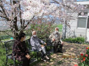 日和のご利用者も、中庭にてお花見を楽しまれました。
