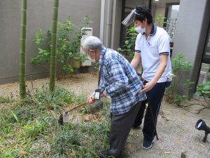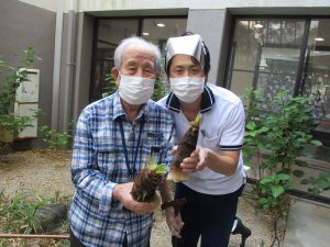 施設内にて竹の子が掘れる中庭があり、ご利用者が、竹の子堀りに参加されました。