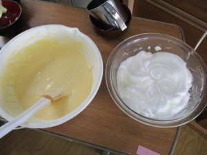 ケーキのまわりには、季節のフルーツ(デコポン&はるか)で爽やかにデコレーション。