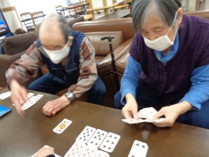 トランプ七並べ おもやい 2022/05/05 10:52 日中、入居者様でトランプを楽しまれています。 入居者様には七並べが人気です♪ その様子を許可を貰って写真に撮らせて頂きました。 とても真剣な表情です! スタッフも参加させて頂きましたが、普通の七並べと ルールーが少し変わってある為、手慣れた入居者のスピードに 速すぎてついていけませんでした。笑 教えて頂きながら行いました♪ また、参加させて頂きたいと思います。 グループホームおもやい 次の記事へ 一覧に戻る 前の記事へ