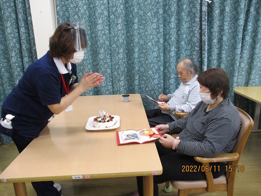 誕生会 ひより 2022/06/13 18:01 日和では、6月生まれの誕生会を行いました! 今月は、2人のご利用者様がお誕生日を迎えられました。 誕生カードをとても喜ばれ、いつまでも眺められていました。職員手作りのヨーグルトムースケーキを囲み、バースデーソングを歌い、和やかな時間を過ごしました。 お誕生日おめでとうございます! いつまでもお元気で日和においで下さいね♬ せいわデイサービスセンター日和 次の記事へ 一覧に戻る 前の記事へ