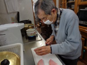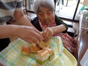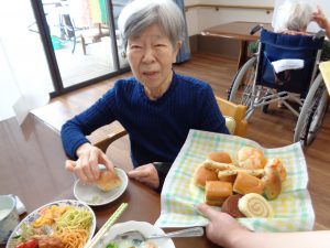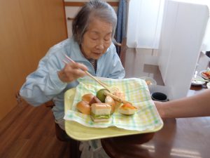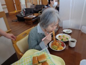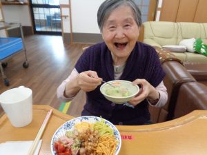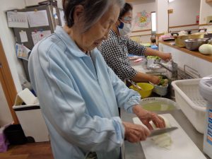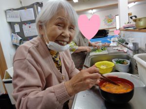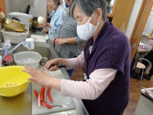 入居者様にも切ったり混ぜたりとお手伝いして頂き、すごく美味しそうに