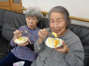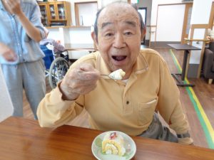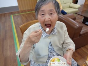 ケーキを頂きながら「〇〇歳になったよ~こんなに長く生きるとは
