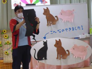 答えは右から「ぶた」「いぬ」最後は「ねこ」…でした。