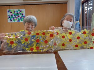 7月の飾り作り おもやい 2022/08/11 18:47 壁画制作を手伝って頂きました。 今回のテーマは「ひまわり」です。 皆様に協力して頂き沢山のひまわりが完成しました。 とても、夏らしい飾りが出来ました。 グループホームおもやい 次の記事へ 一覧に戻る 前の記事へ