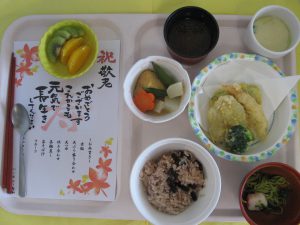 9月15日は昼食時に敬老のお祝いメニューをお出しいたしました。