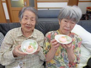 おやつに、お祝いのお饅頭も頂き、皆様とても美味しそうに召し上がっておられました。