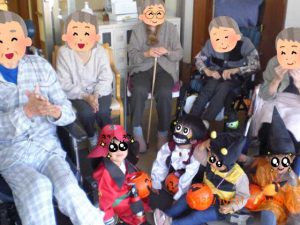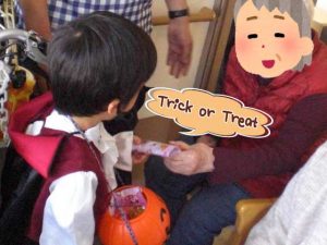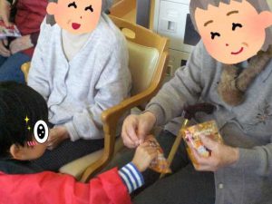 入居者さまたちは、笑顔でお菓子を渡しています(ㅅˊᵕˋ*)