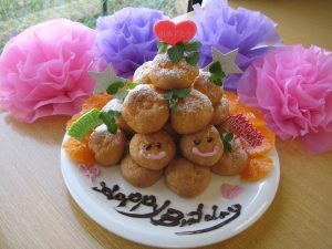 今回は職員お手製の”シュークリームタワー”でお祝いです💛💛
