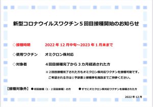 新型コロナウイルスワクチン5回目接種開始のお知らせ