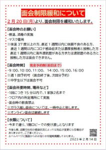 詳しくは下記、もしくは施設内掲示をご確認下さい。